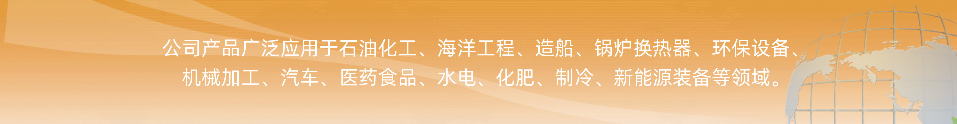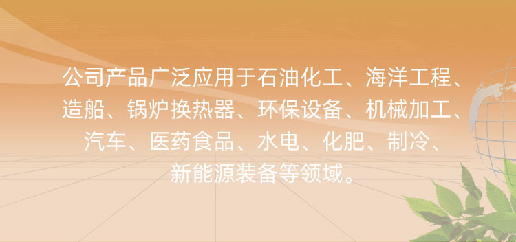 石油化工、海洋工程、造船、锅炉换热器、环保设备、机械加工、汽车、医药食品、水电、化肥、制冷、新能源装备等领域。